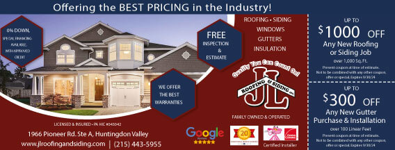 For over 30 years, JL Roofing & Siding has offered exterior home improvement services to homeowners throughout Bucks County, Montgomery County, the Main Line, and New Jersey.